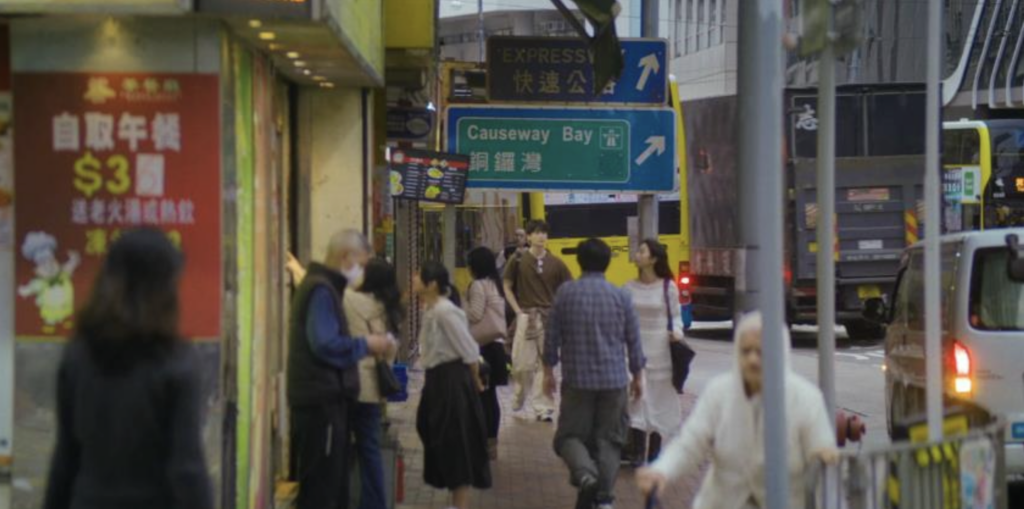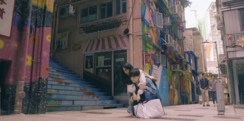 香港舊都市散發的獨特吸引力,被李鍾碩與文佳煐的一段「前後腳」戲碼完美呈現。李鍾碩於騎樓下熙來攘往的人群當中穿梭,經過茶餐廳、唐樓等富有舊香港情懷的街景,伴隨著文佳煐的身影,代表著男主角與女主角無視時間變遷的愛情。