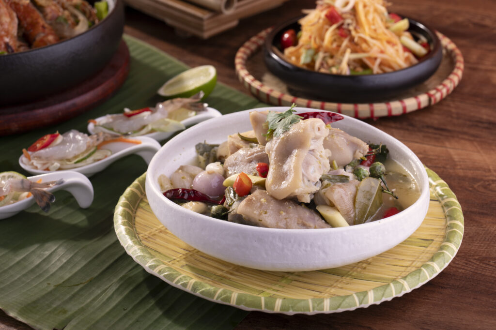 是泰國北部的菜式,味道會較濃烈、香辣,加入泰國芫荽葉、辣椒及加重香茅份量,令豬手味道更香甜鮮味。