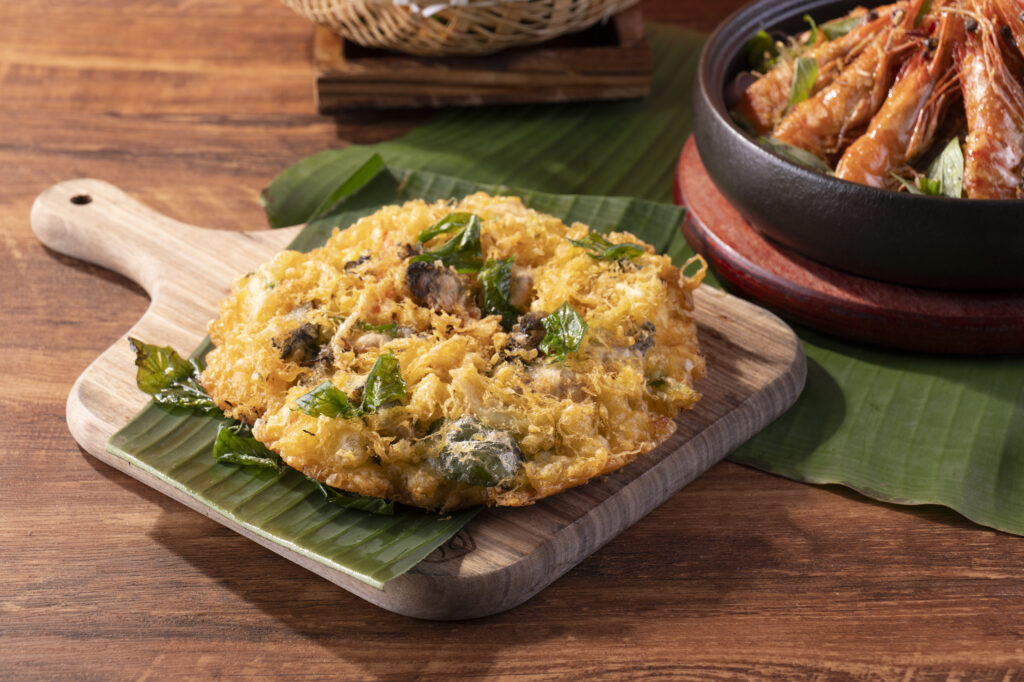 跟坊間的蠔餅與別不同,師傅先在餅漿內加入黃咖喱粉,令賣相更鮮艷。然後加入金不換一齊煎炸,充滿陣陣茴香味。