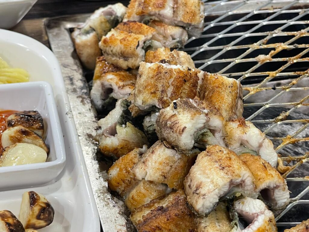 弘大風川鰻魚 是首爾弘大區頗受歡迎的鰻魚專門店,這裡的鰻魚選用新鮮食材,經過精心醃製後再炭火慢烤,外層烤得微焦酥脆,內裡肉質仍保持鮮嫩多汁。每一口都能吃到鰻魚特有的油香與自然鮮甜,酥脆口感和魚油香氣完美結合,令人忍不住一片接一片。