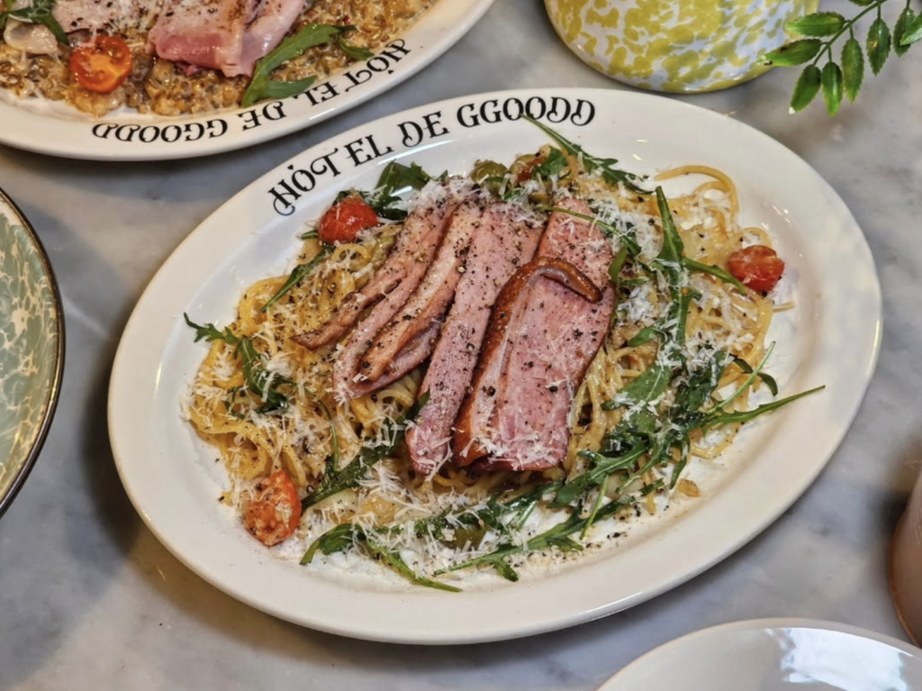 位於首爾的 Hôtel de GGOODD(오뗄드꾸뜨) 是一家結合法式氛圍與韓系美感的餐廳,以高質感的裝潢與精緻餐點在年輕族群間大受歡迎。店內環境以柔和奶油色與歐式復古元素為主調,搭配高挑空間與花藝擺設,無論是約會、慶生還是拍照打卡都非常適合,走進來就像置身在法國小旅館裡用餐一樣。