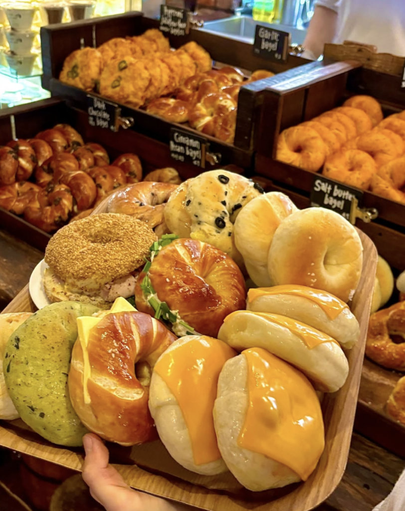他們家的貝果口感紮實、有嚼勁,外層微脆、內裡鬆軟,每一口都能吃出麵香與彈性。口味選擇也非常豐富,從經典的原味、芝麻、藍莓,到內餡飽滿的奶油起司、煙燻鮭魚、松露蛋沙拉等創意組合,無論甜或鹹都能滿足。