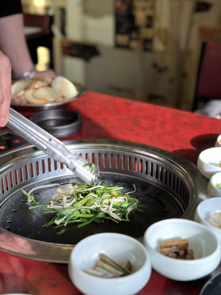 這裡的招牌是各種部位的牛腸,從細嫩的牛小腸到厚實的牛大腸,每一塊都經過仔細清洗和醃製,保證沒有腥味又充滿香氣。烤盤上微微焦香的牛腸搭配店家特製醬料,口感彈牙又多汁,香味撲鼻,每一口都能吃到肉香與調味的完美平衡。