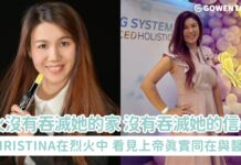 另外,即使到現在家庭的經濟還未回復、試過美容院生意差强人意、領不到薪水,Christina 的十一奉獻卻從未間斷,因爲她堅信,聖經瑪拉基書3章10節所説: 《萬軍之耶和華說:你們要將當納的十分之一全然送入倉 庫,使我家有糧, 以此試試我, 是否為你們敞開天上的窗戶,傾福與你們 ,甚至無處可容。》